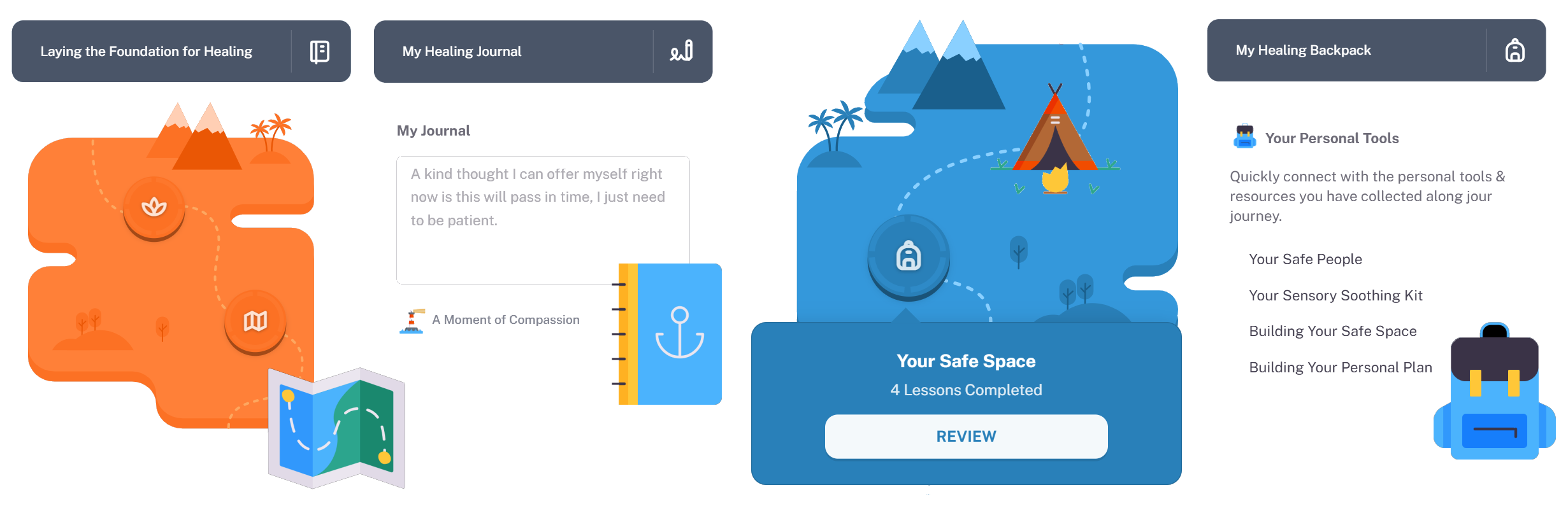 Healing Explorer is a trauma-informed app that provides the immediate care your clients deserve, through thoughtful, daily guidance and in-the-moment support to empower them and ease the burden on your team.